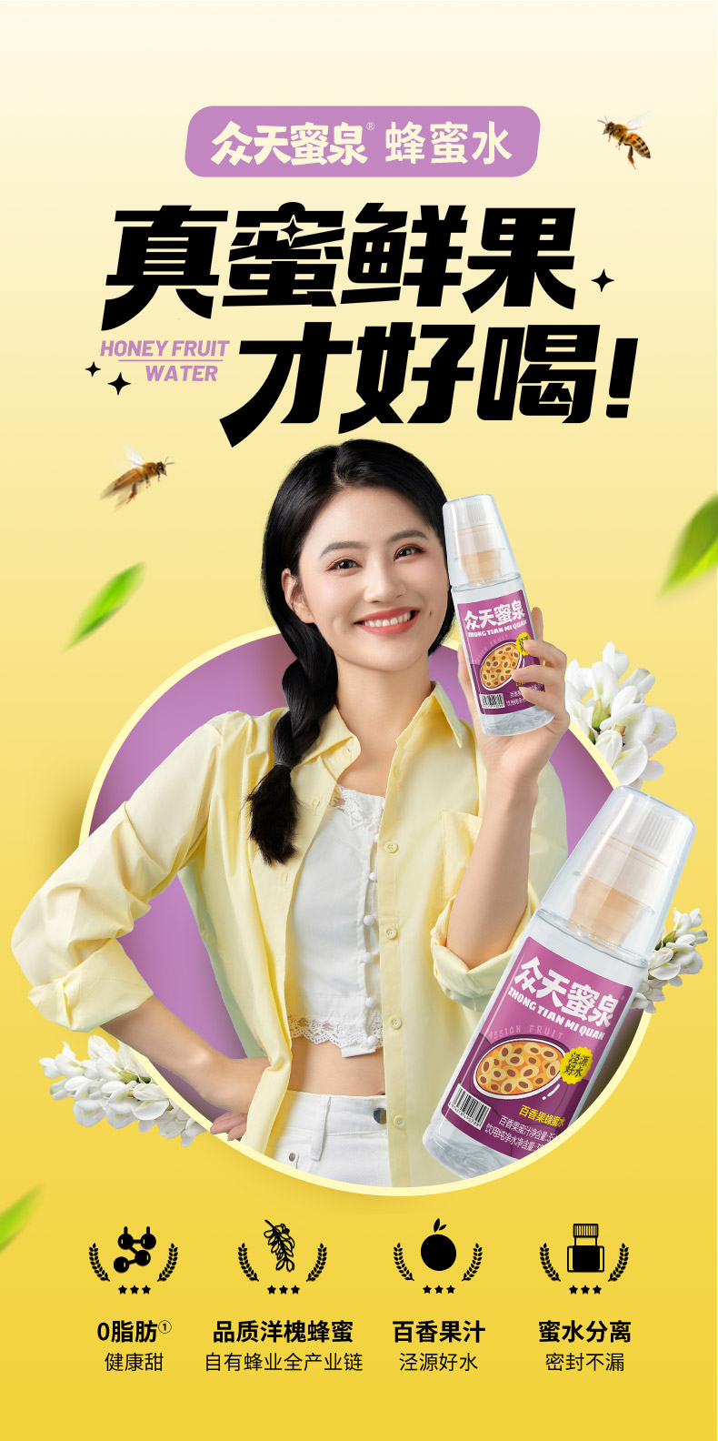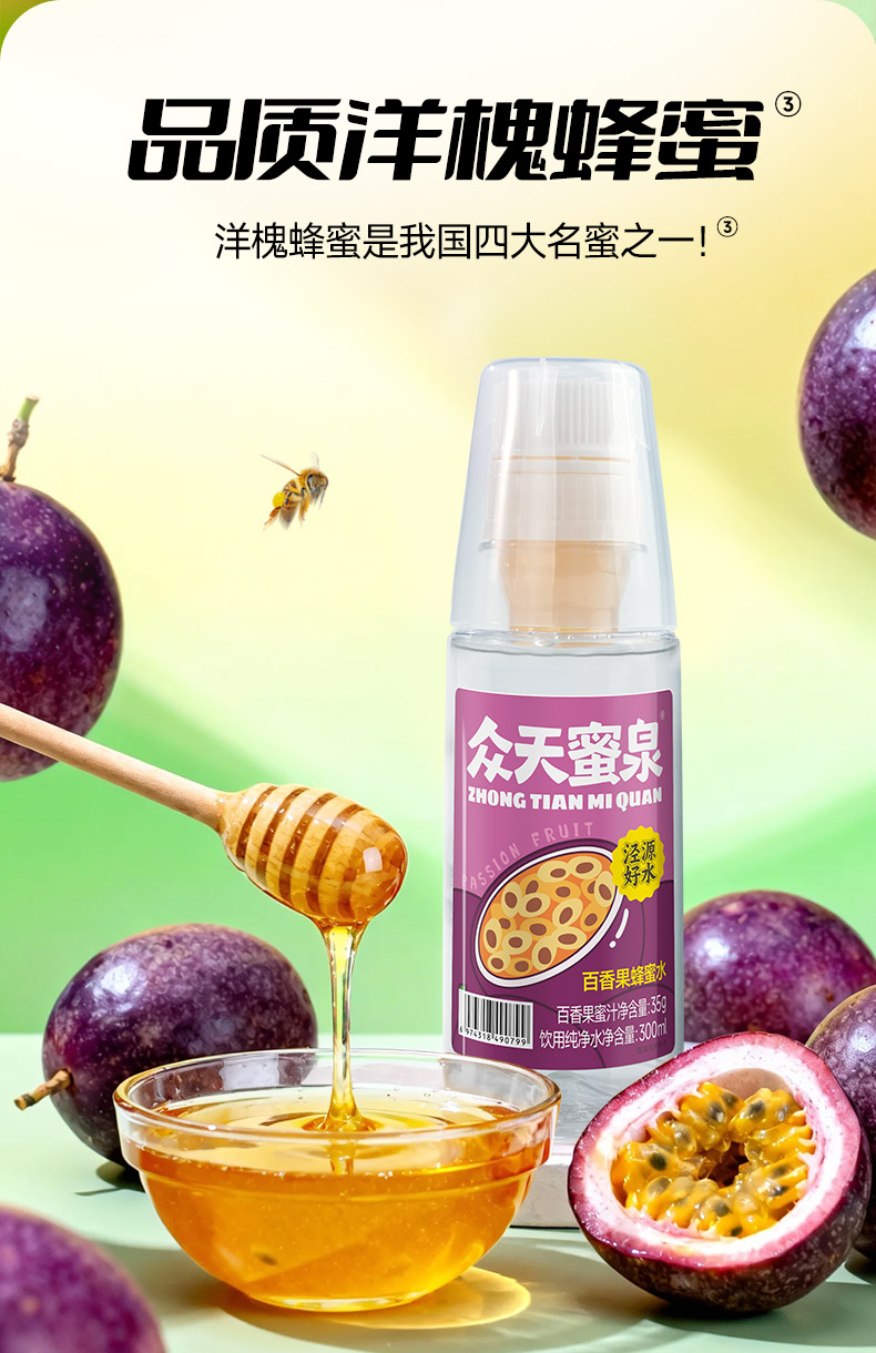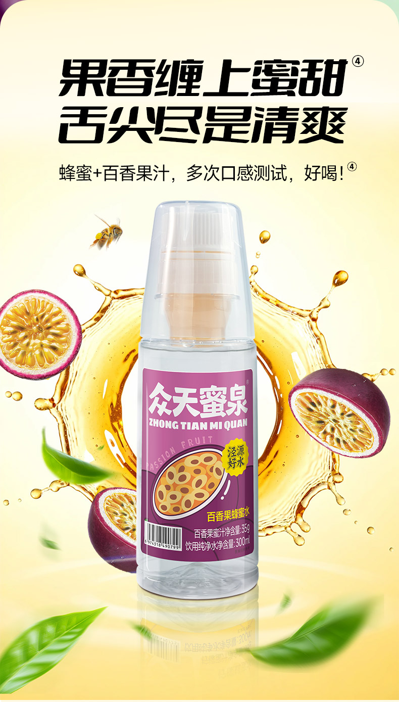 百香果蜂蜜水(风味蜜汁35g+饮用纯净水300ml)x10瓶